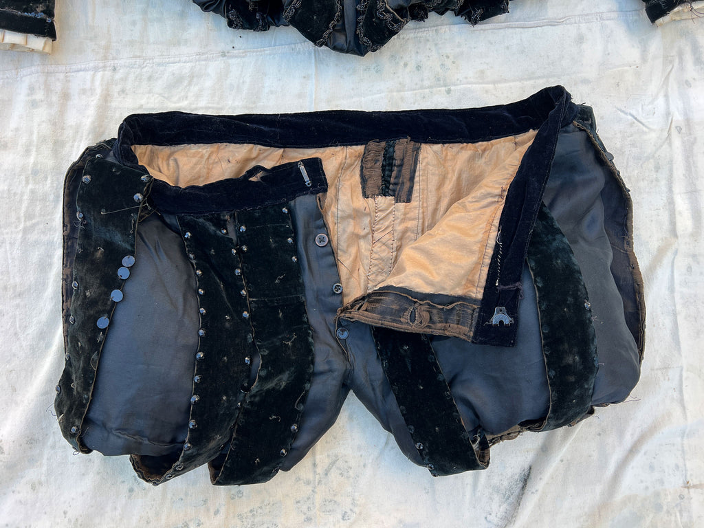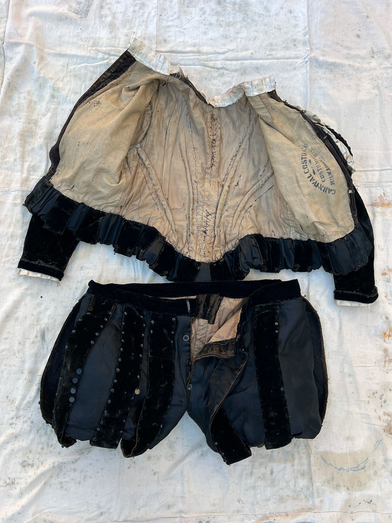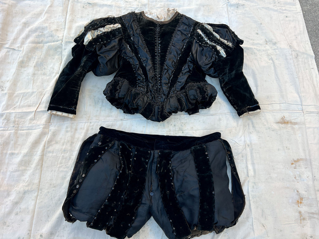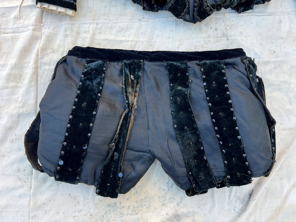 Antique 1890's Theatre Costume with Studded Glass Beadwork and Padded Shoulders and Shorts