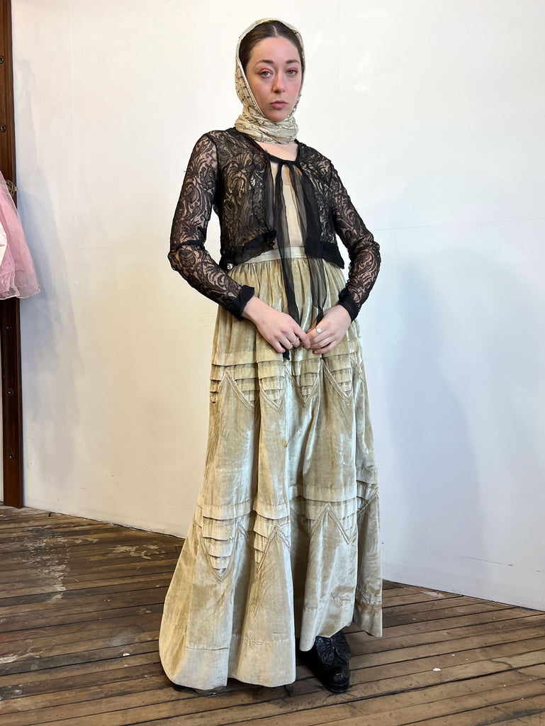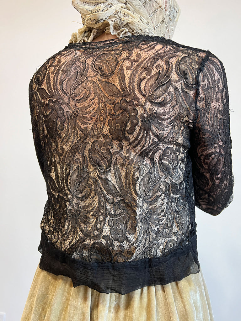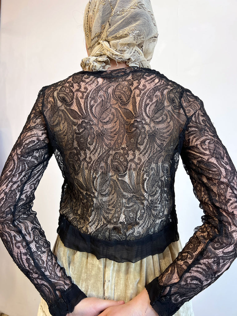 Incredible antique black long sleeved hand lace top