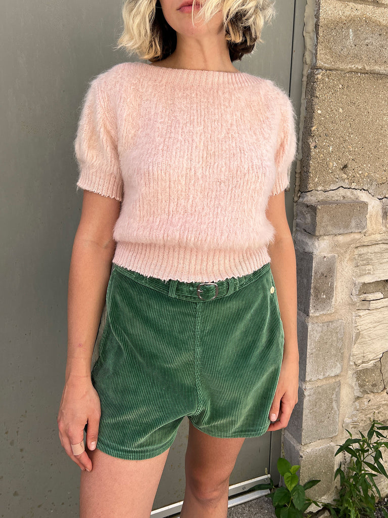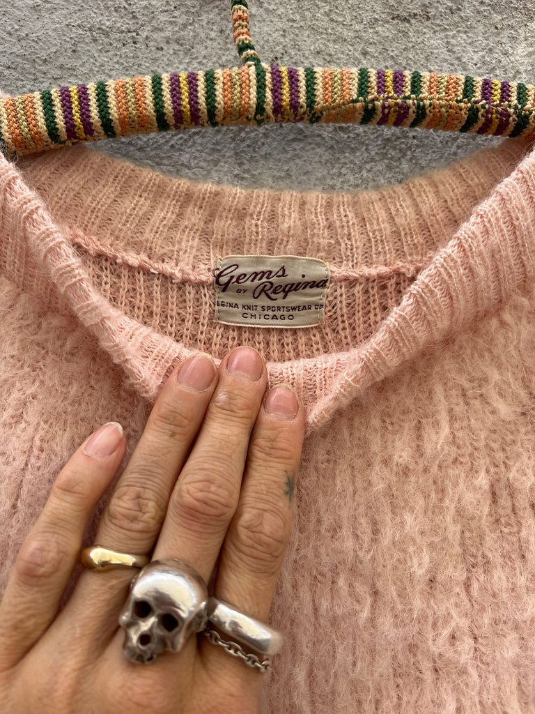 Vintage 1940's Women's Pink Fuzzy Sweater