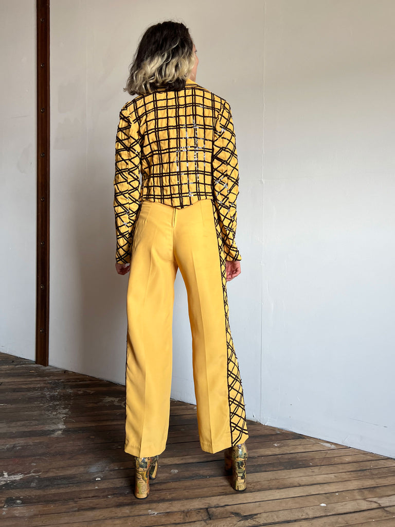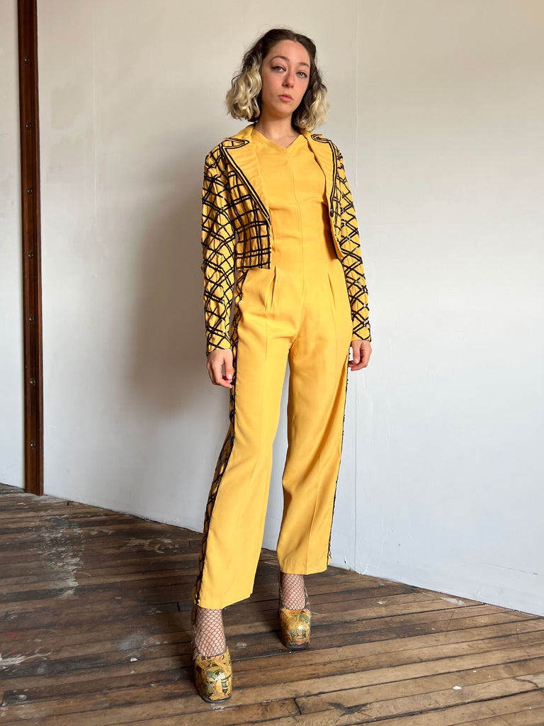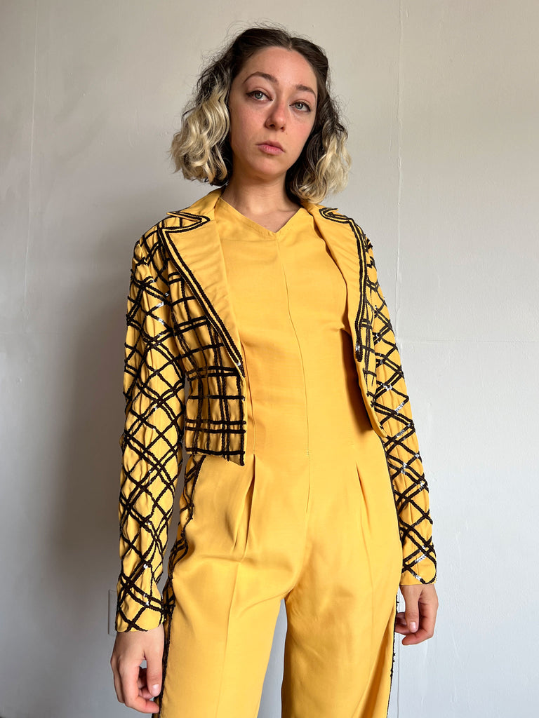 INSANE 1940's yellow matching sequined jumpsuit and jacket