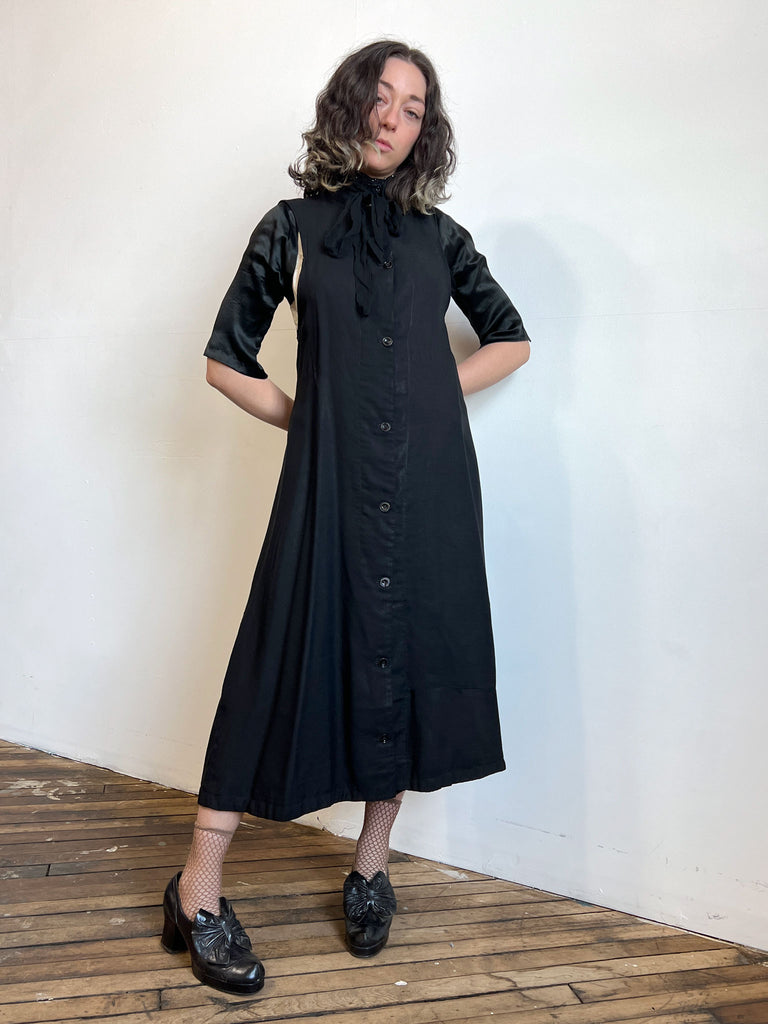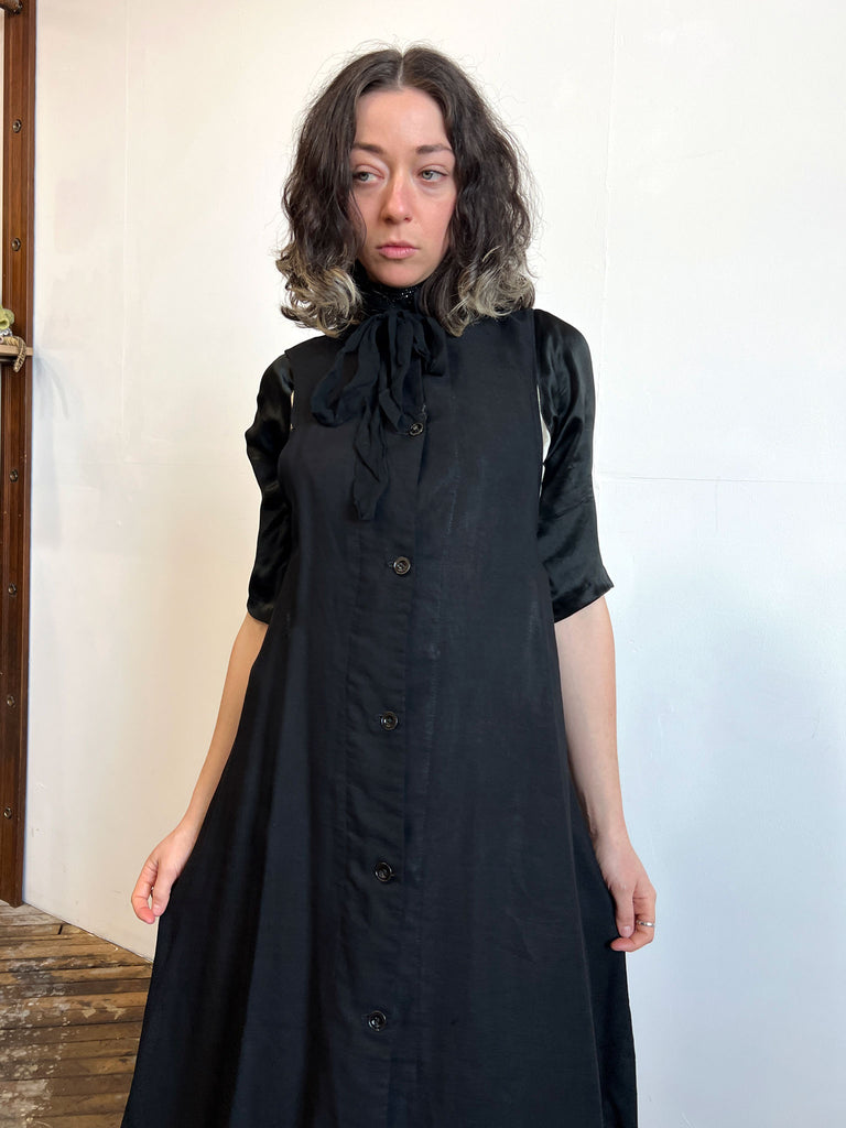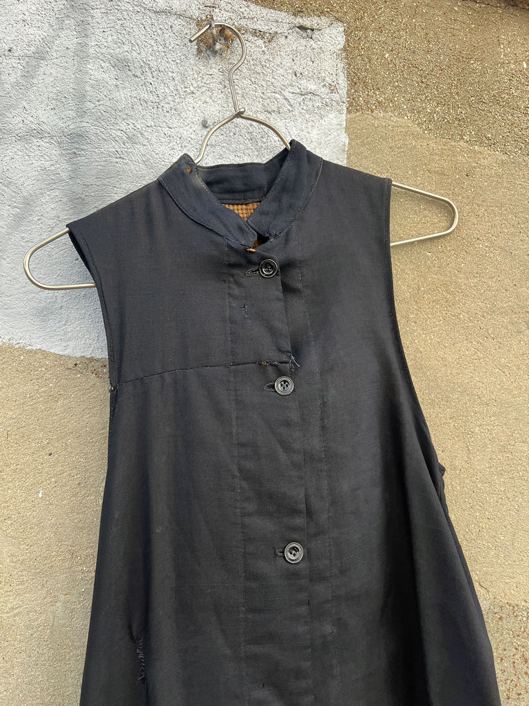 Incredible antique black wool button up long sleeveless vest