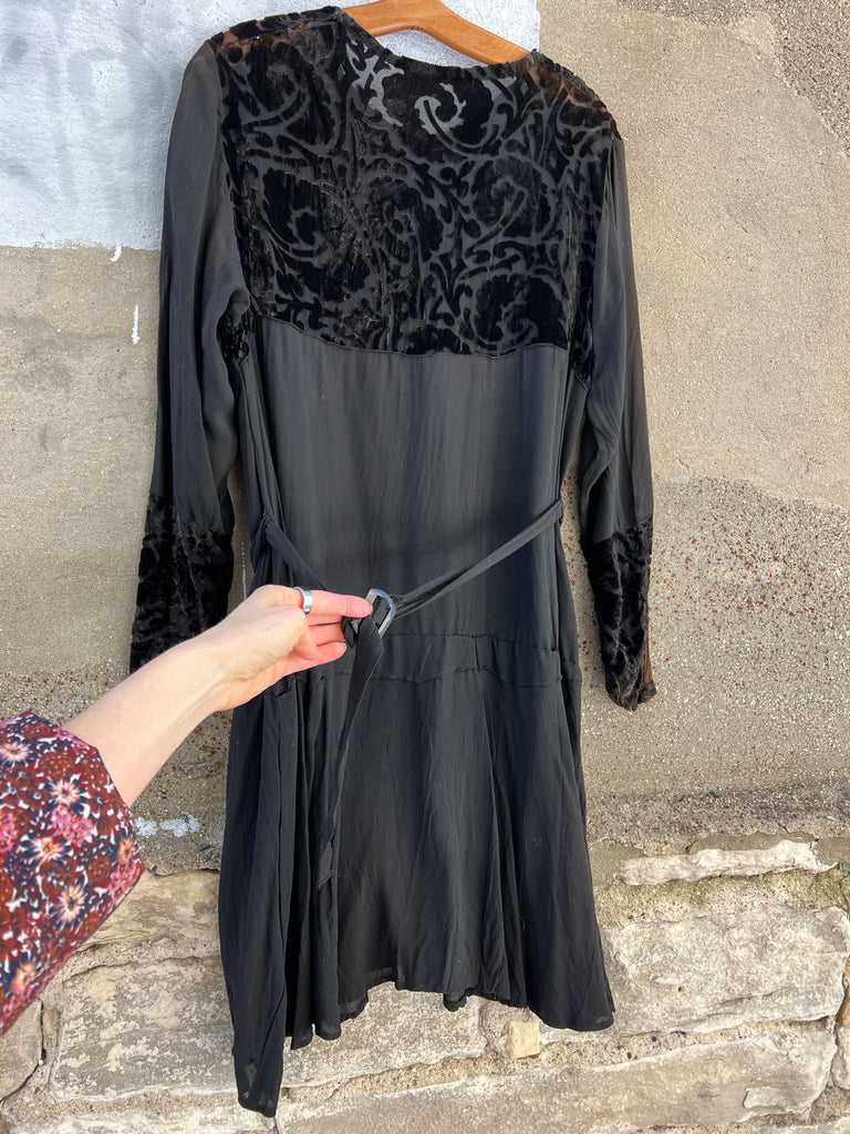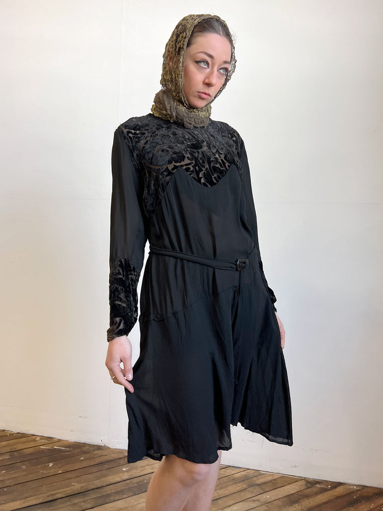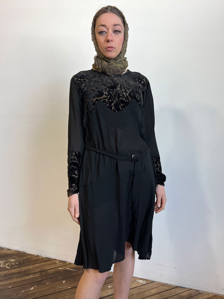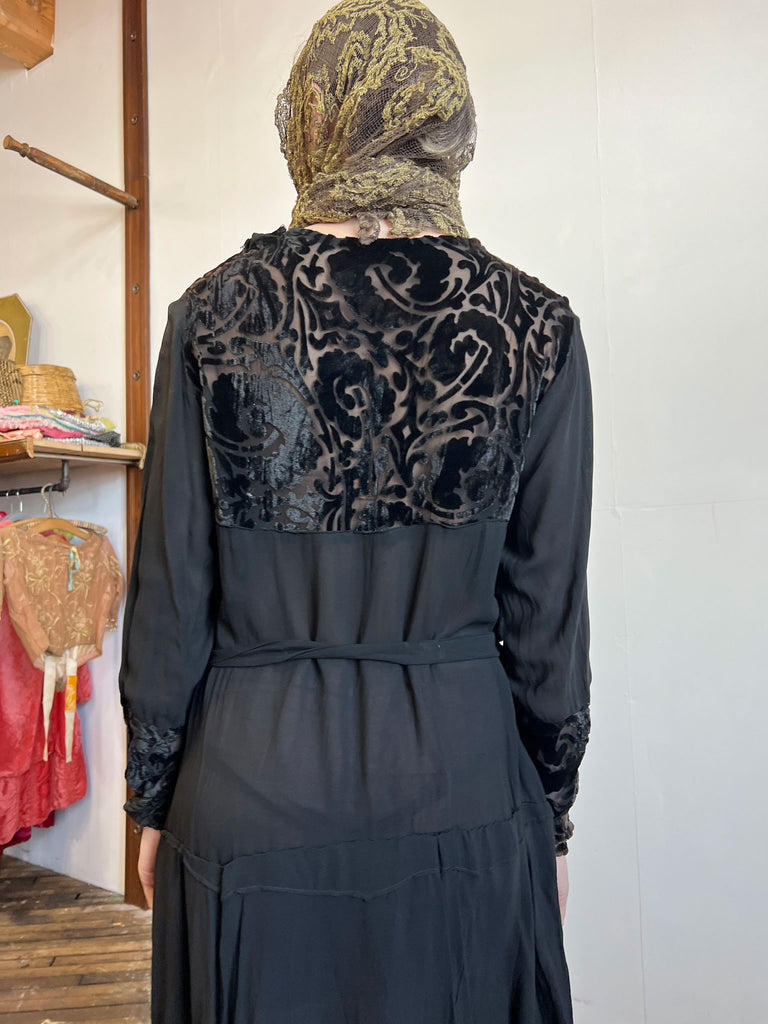 Vintage 1920's Devore Burnout Silk Velvet and Crepe Dress